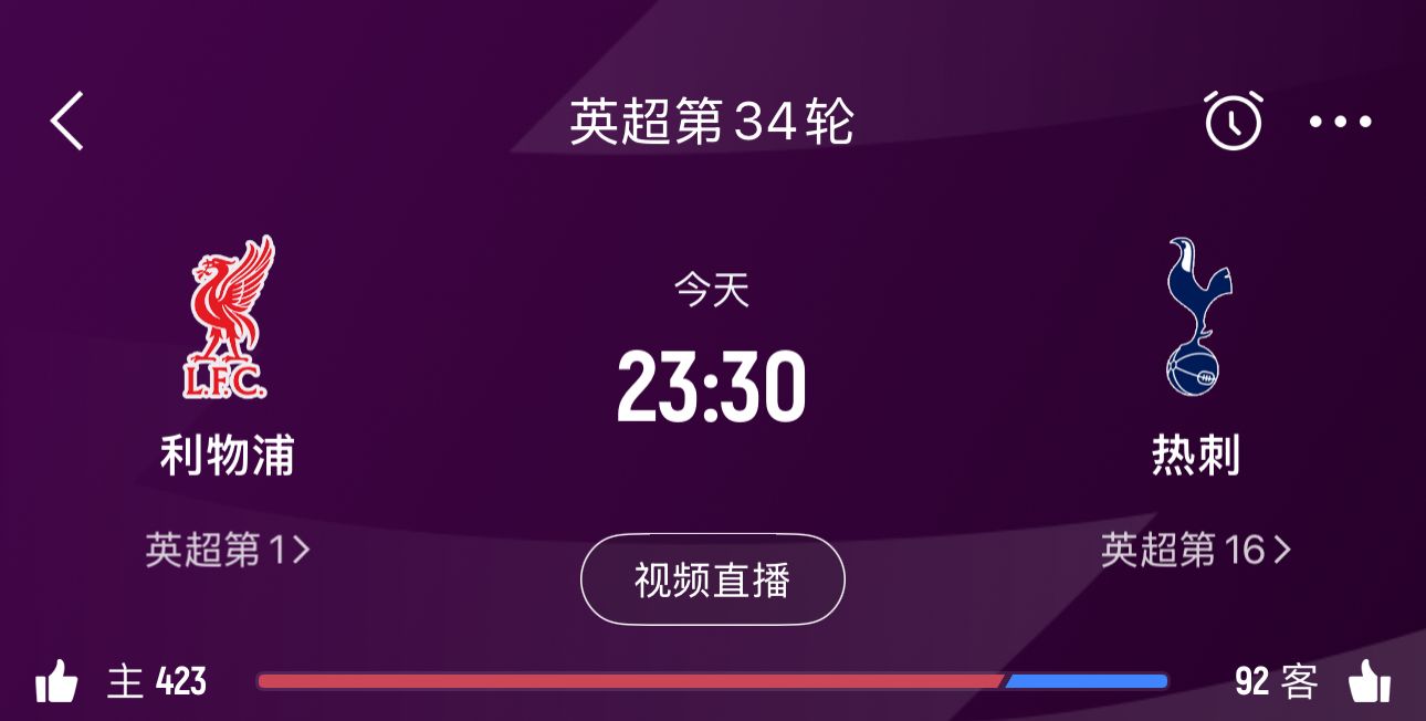今夜見證紅軍加冕23:30利物浦主場戰(zhàn)熱刺 不敗即鎖定英超冠軍